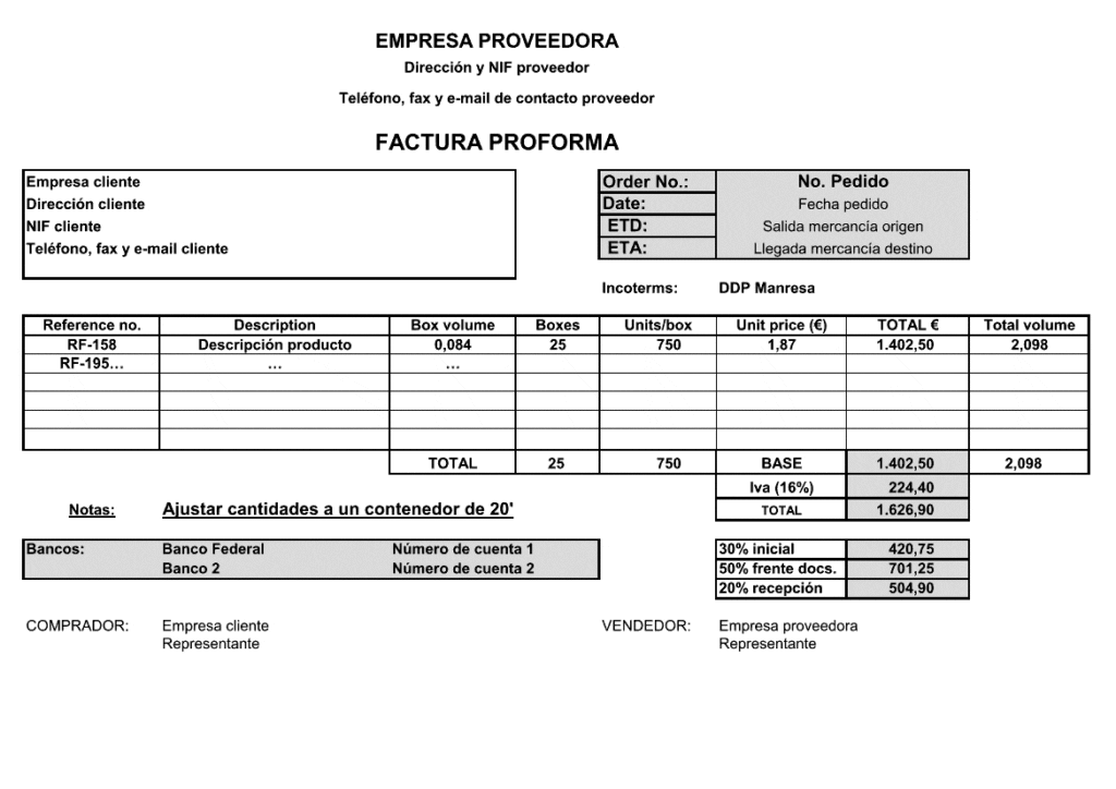 A continuación te mencionamos los puntos que se deben de incluir en la proforma: